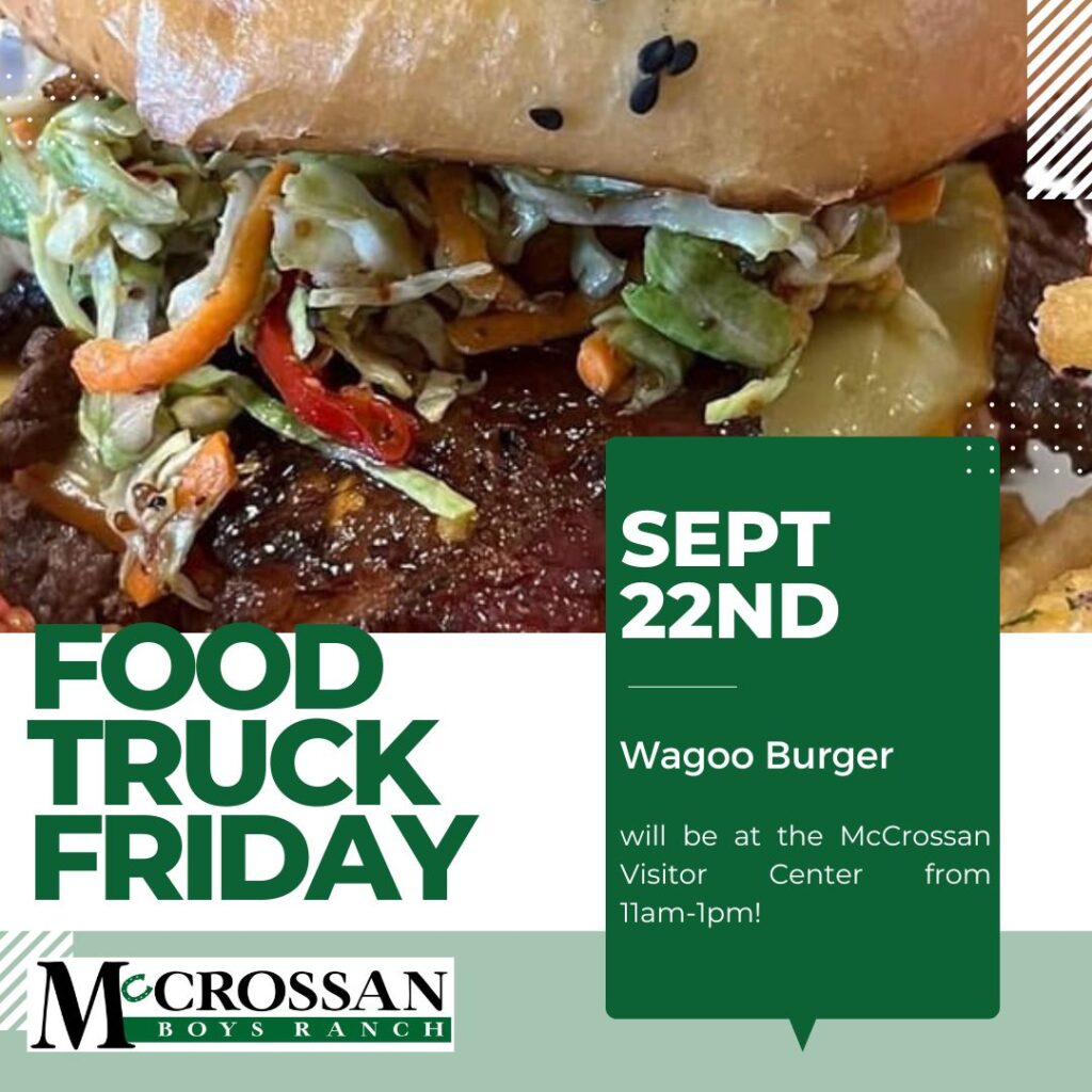 The final Food Truck Friday at McCrossan Boys Ranch is this week. Wagoo Burger will be there from 11 a.m. to 1 p.m.