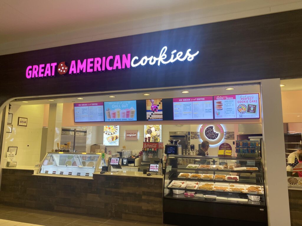 Great American Cookies is celebrating its return to The Empire Mall with a grand opening event from 10 a.m. to 1 p.m. Saturday. The first 100 customers will receive a free cookie cake slice. There will be a drawing for a chance to win free cookies for a year.