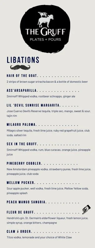 The west-side location is featuring Cranberry St. Germaine, Old A** Friend, Salty Cowboy, Prairie Sky and Arnold Palmer Mule.