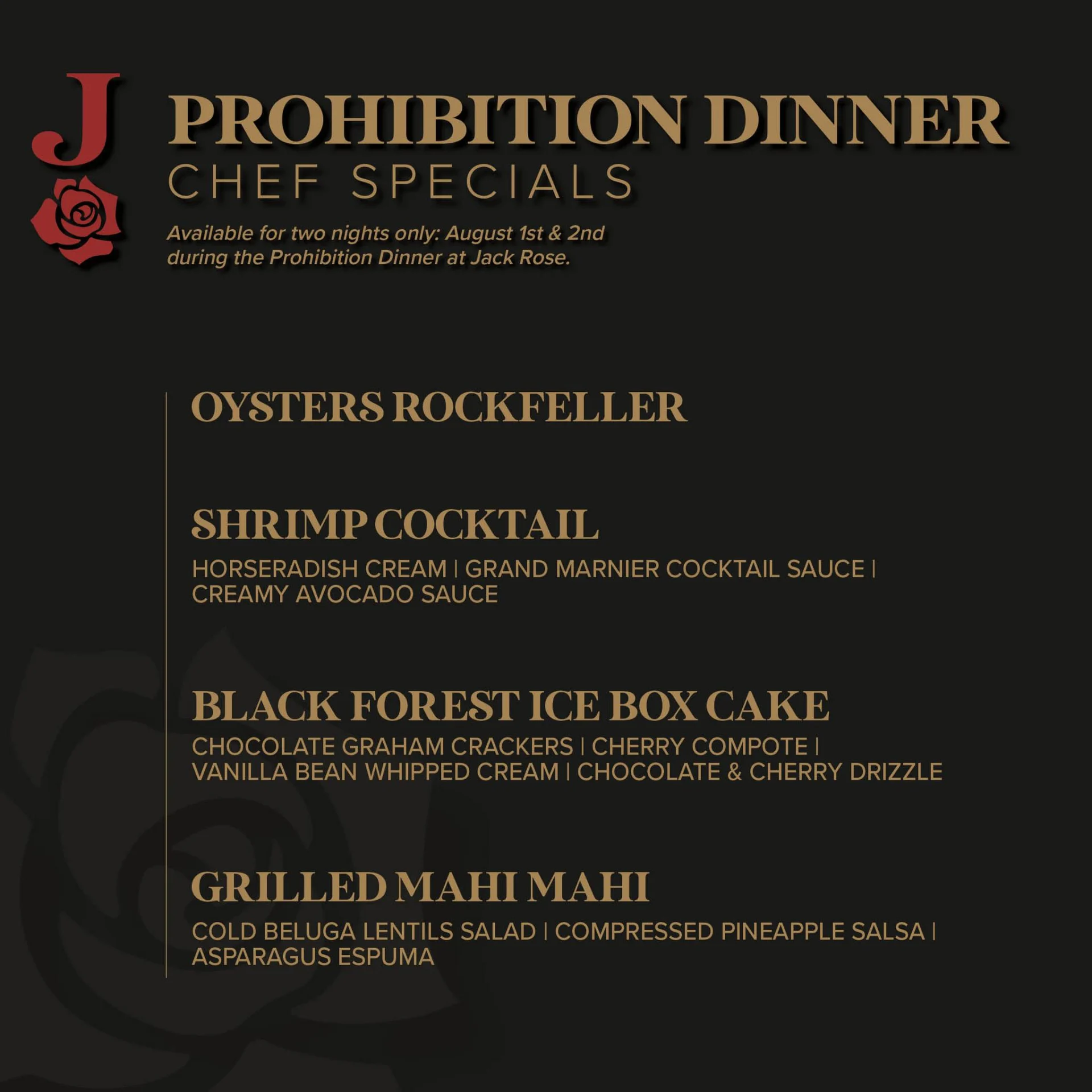 Step into a speakeasy this weekend with Jack Rose Social Club’s transformation into Jack’s Hideaway. Prohibition-era cocktails will be offered along with chef specials and live music from Ken Joyne on Friday and Raine and Big Daddy on Saturday. Diners are encouraged to wear “Gatsby glam” or “gangster garb.”