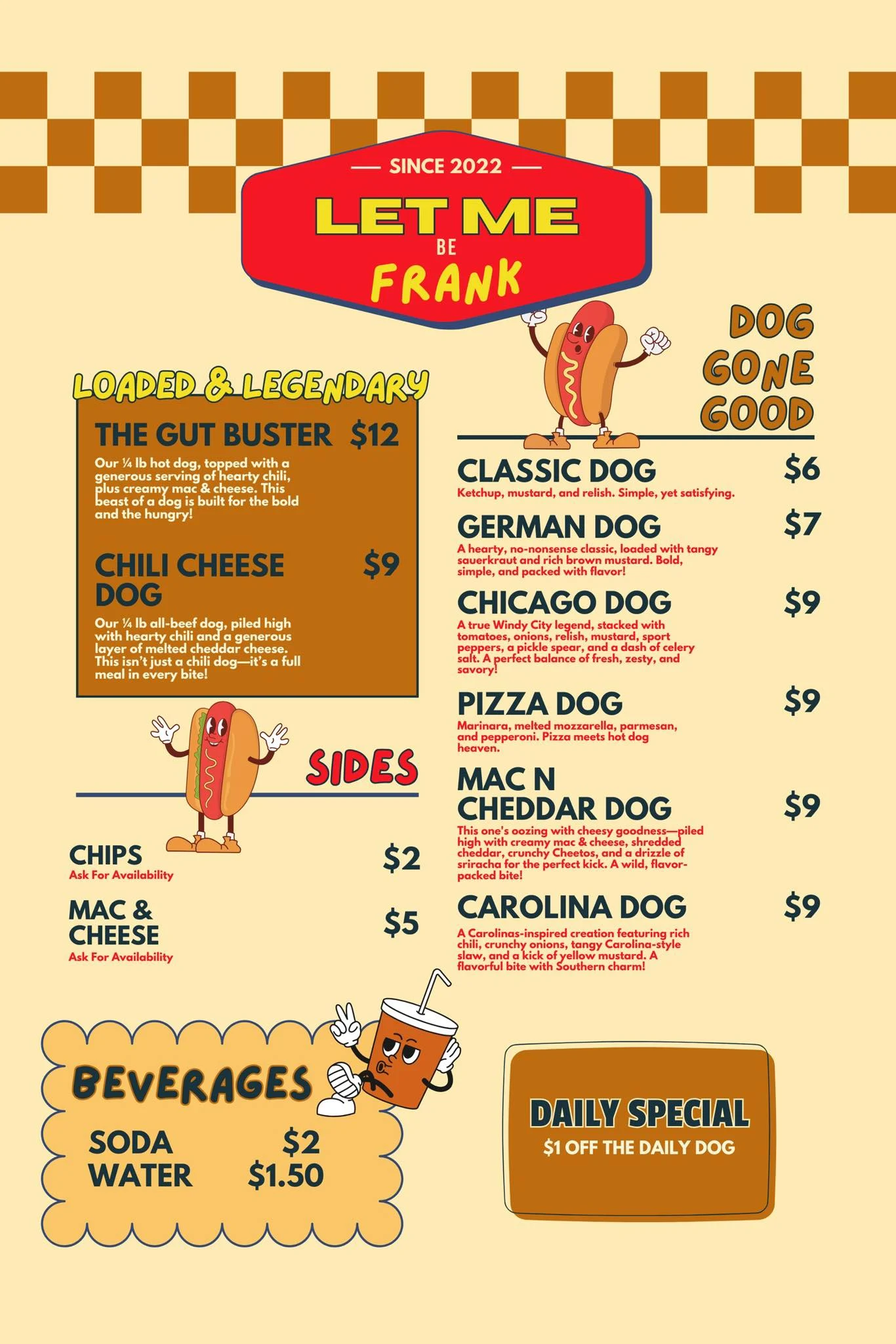 Let Me Be Frank has updated its menu to include the new Carolina Dog and lower prices on its Classic and Chili dogs.