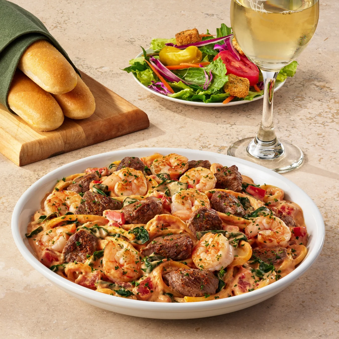 Olive Garden has a new limited-time entree: Calabrian Steak and Shrimp Bucatini. The dish features a spicy cream sauce, along with spinach and tomatoes. It’s available through Aug. 25. The restaurant also added Spicy Three-Meat Sauce as an option on the Create Your Own Pasta menu. It has cherry and red bell peppers, pepperoni, red wine, garlic, chili flakes and classic meat sauce.