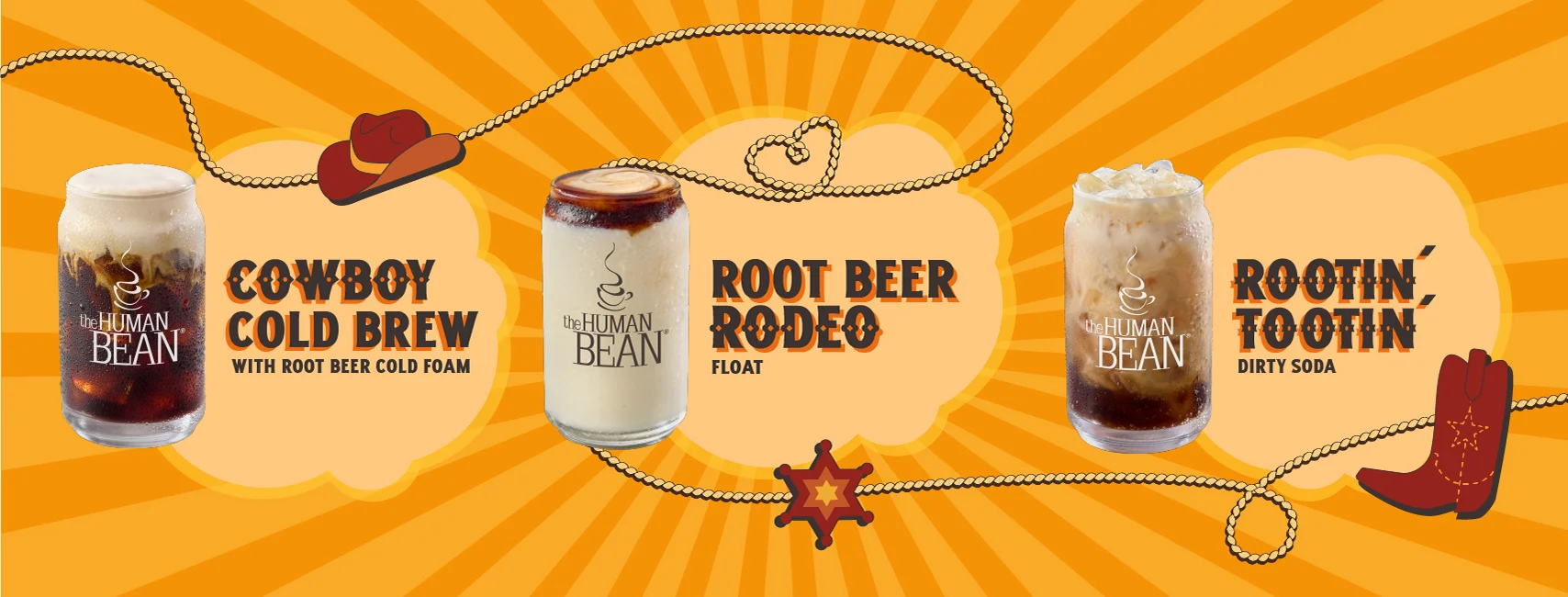 The Human Bean is featuring root beer drinks until Sept. 2. Cowboy Cold Brew features root beer-flavored cold foam, Root Beer Rodeo Smoothie is root beer soda over a vanilla smoothie, and Rootin’ Tootin’ Dirty Soda is sparkling water and root beer syrup on ice with a splash of cream.