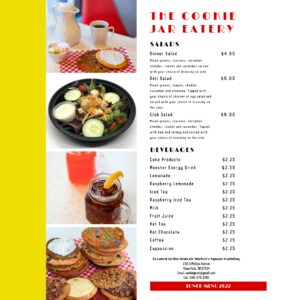 Lunch is back at The Cookie Jar Eatery. Owners Glen and Elain Koch suspended it in October, citing upcoming holiday orders, rising food costs and the labor shortage. Sandwiches, salads and soups are served from 11 a.m. to 2 p.m. Tuesday through Friday. Cookies, fudge and other bakery items are ready when the shop in Shriver Square at 11th and Phillips opens at 10 a.m.