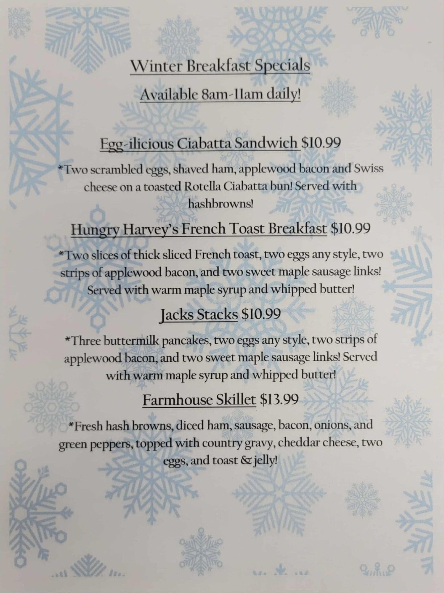 New breakfast specials have arrived at Crack’d Pot Restaurant & Bakery. While breakfast is served all day, the discounted prices on the specials are available from 8 to 11 a.m. daily.