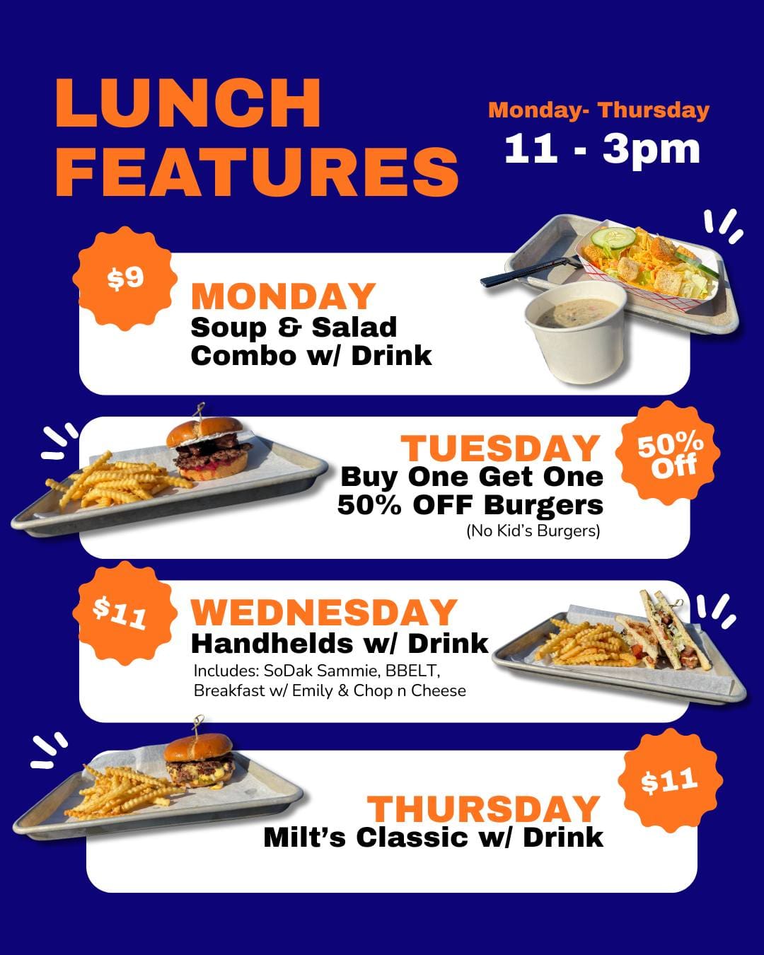 The Lodge Bar & Grill at Jacobson Plaza has new lunch and dinner features.