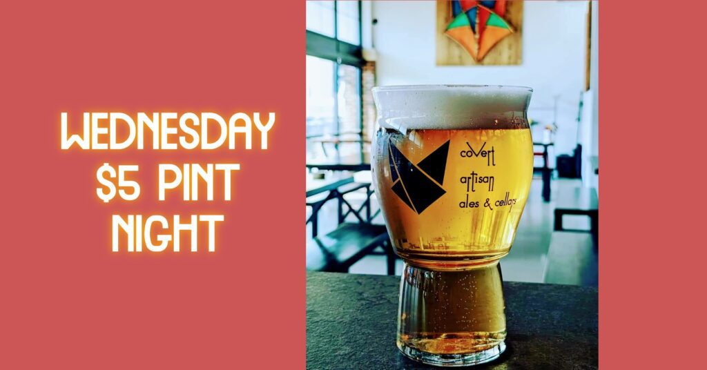 - Covert Artisian Ales & Cellars started selling $5 pints on Wednesdays as part of its fifth anniversary celebration earlier this summer, but the discount is still going.