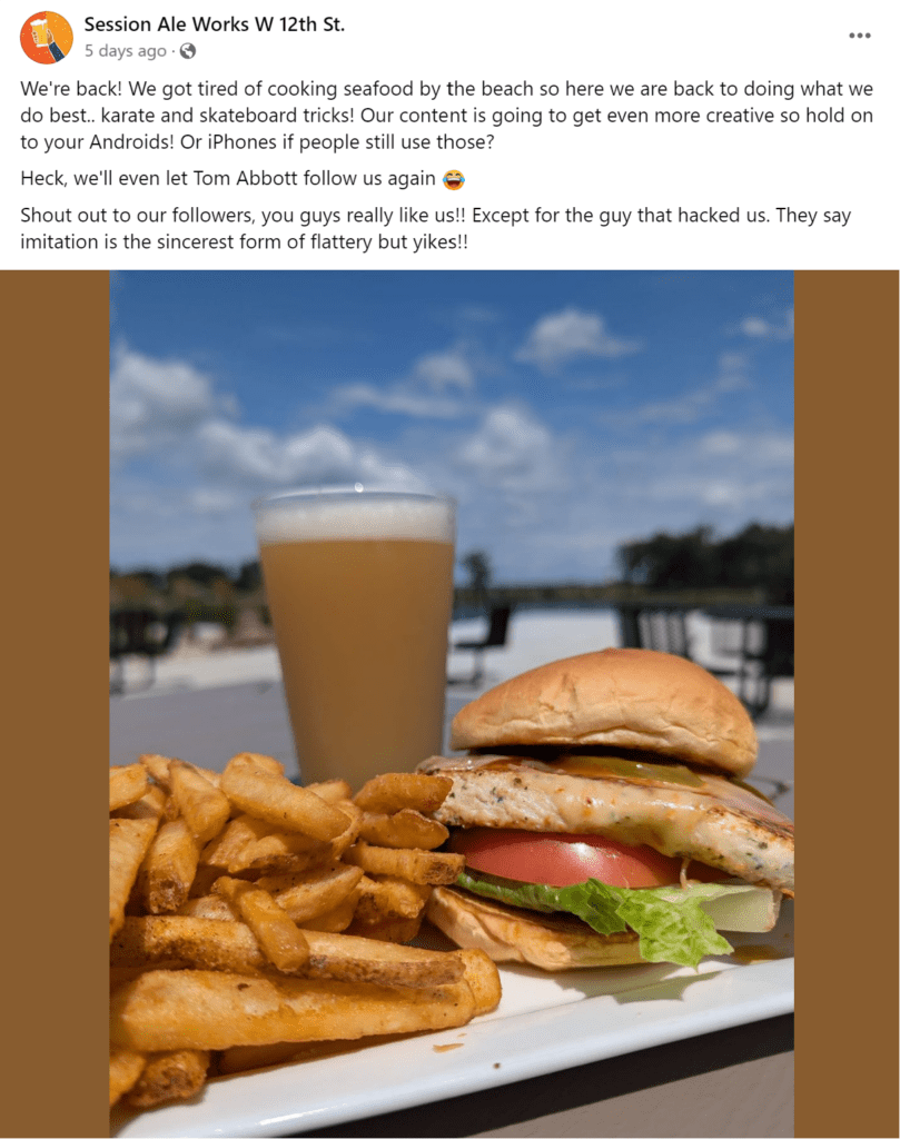 Session Ale Works’ Facebook page was hijacked, so the restaurant and craft beer bar has a new one that you can find here. There’s still lots of great photos of food – just things you actually can get at Session.