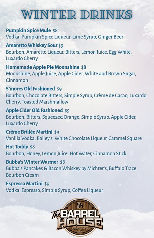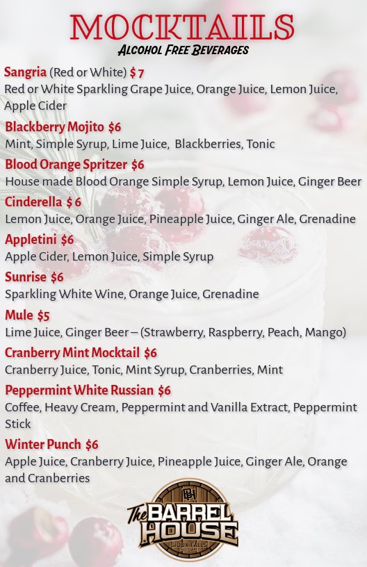 The Barrel House has new featured drink menus for winter, including cocktails and mocktails.
