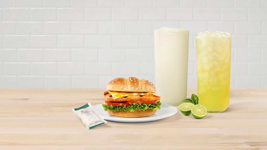 Chick-fil-A has new limited-time specials, including the Grilled Spicy Deluxe Sandwich, which was introduced in 2021. It features a grilled chicken breast marinated with a blend of peppers, served on a multigrain brioche bun with colby-jack cheese, lettuce and tomato. It comes with a limited-time condiment: Cilantro Lime Sauce. Seasonal drink offerings are the Key Lime Frosted Lemonade and Key Lime Lemonade.