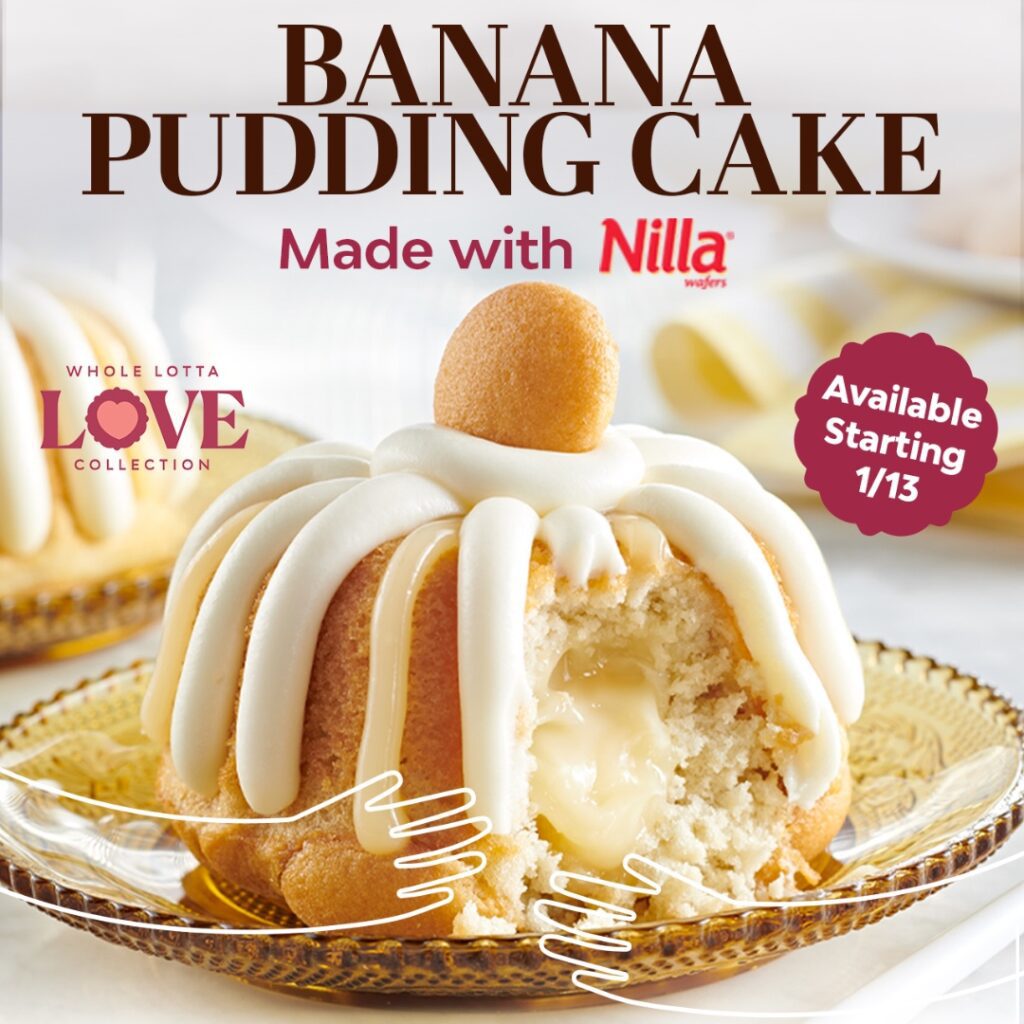 The new pop-up flavor at Nothing Bundt Cakes is Banana Pudding Cake featuring Nilla Wafers. It’s available through next week or while supplies last.