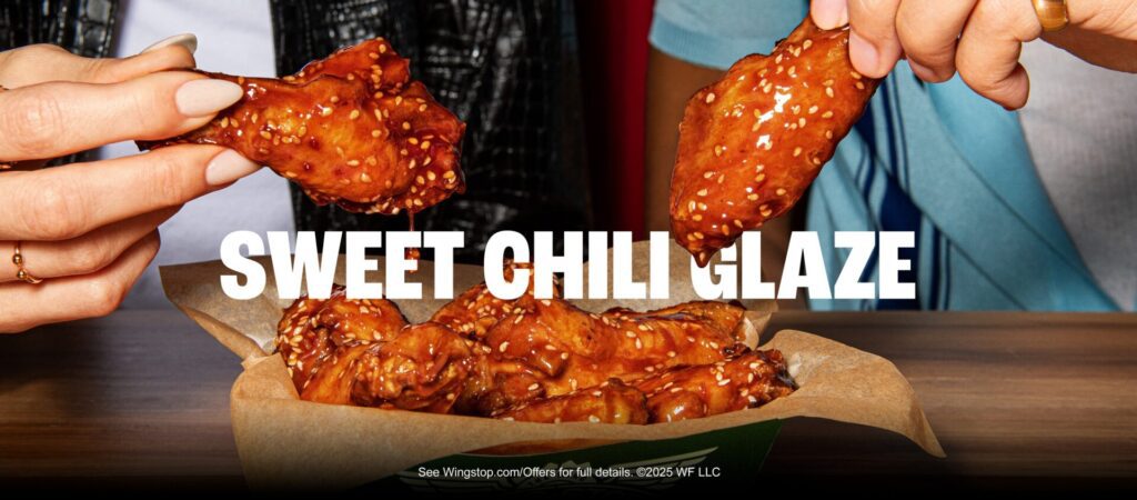 Wingstop’s new limited-time flavor underwent a quick renaming before its launch today. Originally dubbed Pacific Glaze, it’s now Sweet Chili Glaze out of respect for the Los Angeles community, which is battling several fires, including one named the Pacific Palisades Fire. Sweet Chili is a sweet-and-spicy fusion of sweet chili, hoisin sauce and red chili sauce, topped with sesame seeds.