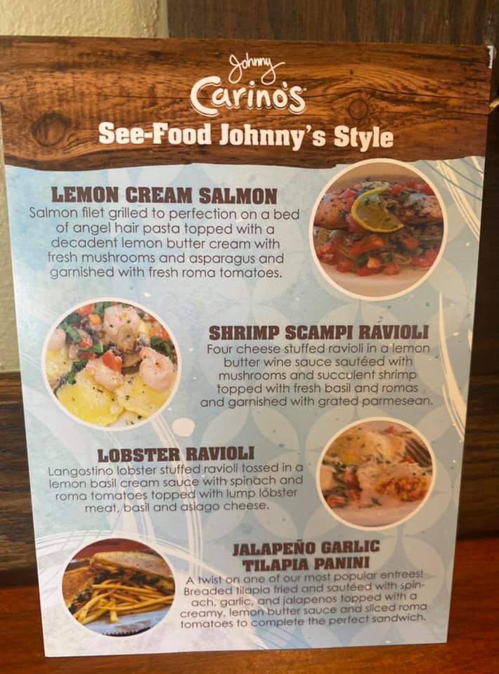 Johnny Carino’s has several “see-food” specials for a limited time.