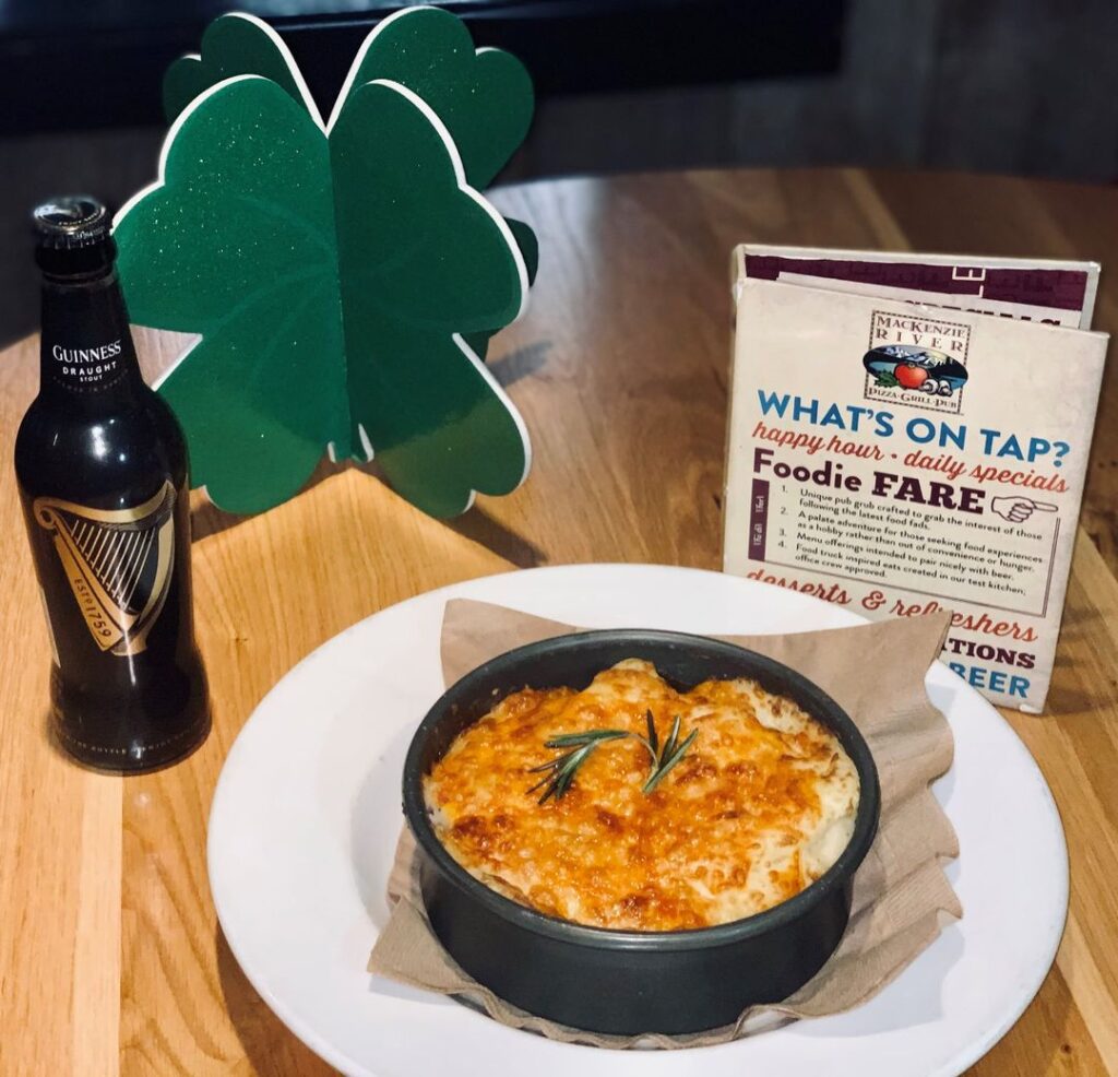 Here’s another special menu item for the season: Mackenzie River Pizza Grill & Pub is serving cottage pie through St. Patrick’s Day. Enjoy the restaurant’s version of a shepherd’s pie with ground beef, herbs and veggies in a Guinness gravy, topped with mashed potatoes, mozzarella and cheddar, and baked until golden brown for $9. Get a bottle or can of Guinness for $2.50.