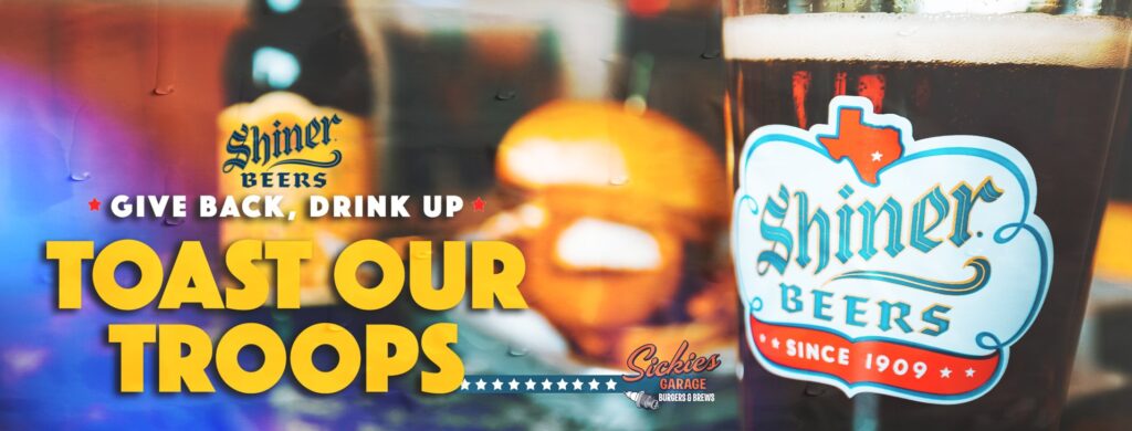 Get a free pint of Shiner beer at Sickies Garage Burgers & Brews by donating a care package item for military members. The Toast Our Troops promotion has a list of care package items, which will be distributed through local military base and USO offices. The offer is good for one item per visit.
