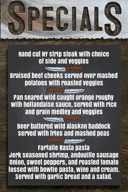 Weekend supper specials for March at Sioux Valley Grille in Canton offer beef, fish and pasta options. The restaurant across from the Lincoln County Courthouse is open until 8:30 p.m. Friday and Saturday.