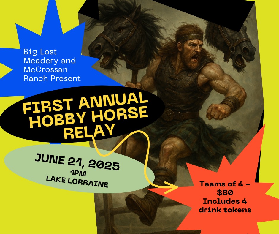 Big Lost Meadery & Brewery is hosting the inaugural Hobby Horse Relay on Saturday to raise money for McCrossan Boys Ranch. Teams of four contestants will use a hobby horse to make their way around the trail at Lake Lorraine, competing at various stations. Prizes will be awarded for best team costume, most style and highest overall score. The event starts at 1 p.m. The entry fee is $80, which includes four drink tickets to Big Lost. Register here.