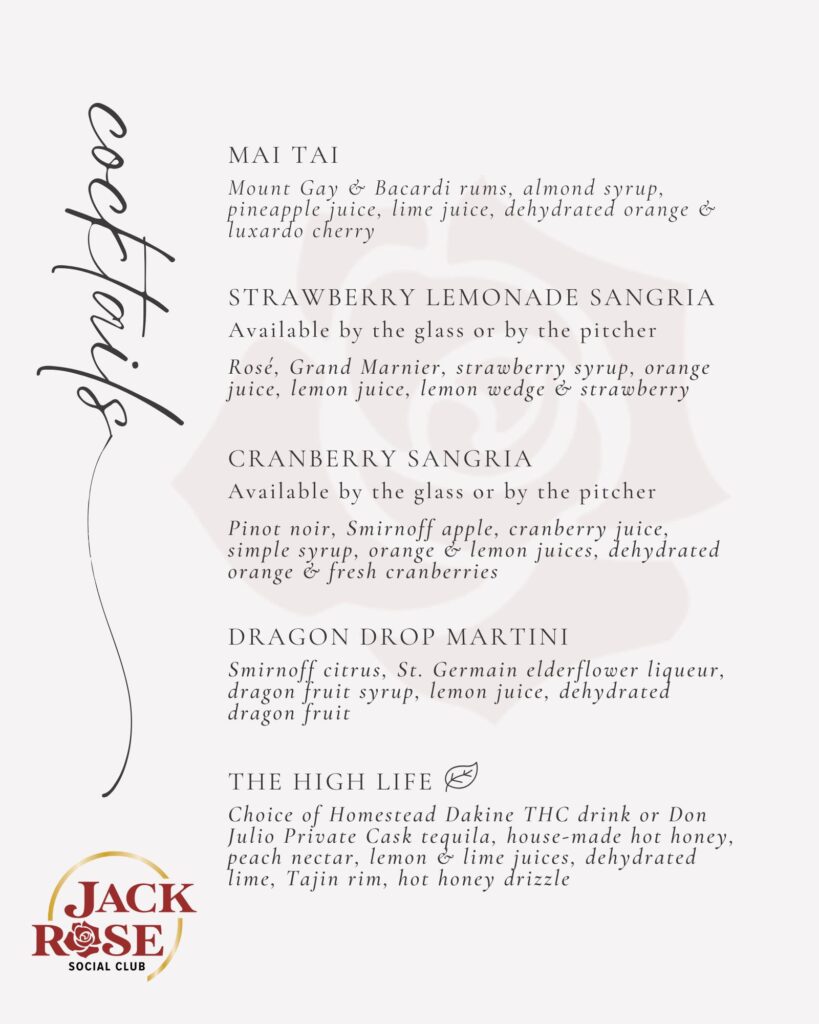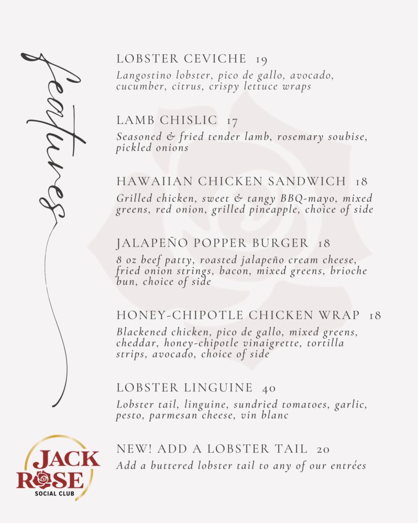 Jack Rose Social Club has new food and drink feature menus. The photo at the top of the page is the lobster ceviche.