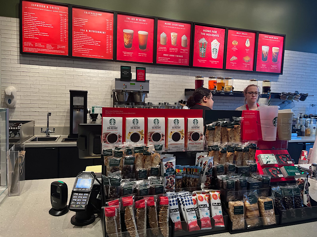 The holiday drink menu and cups have arrived at Starbucks. This year’s offerings include peppermint mocha, iced sugar cookie almond milk latte, caramel brulee latte, toasted white chocolate mocha, chestnut praline latte and Irish cream cold brew.