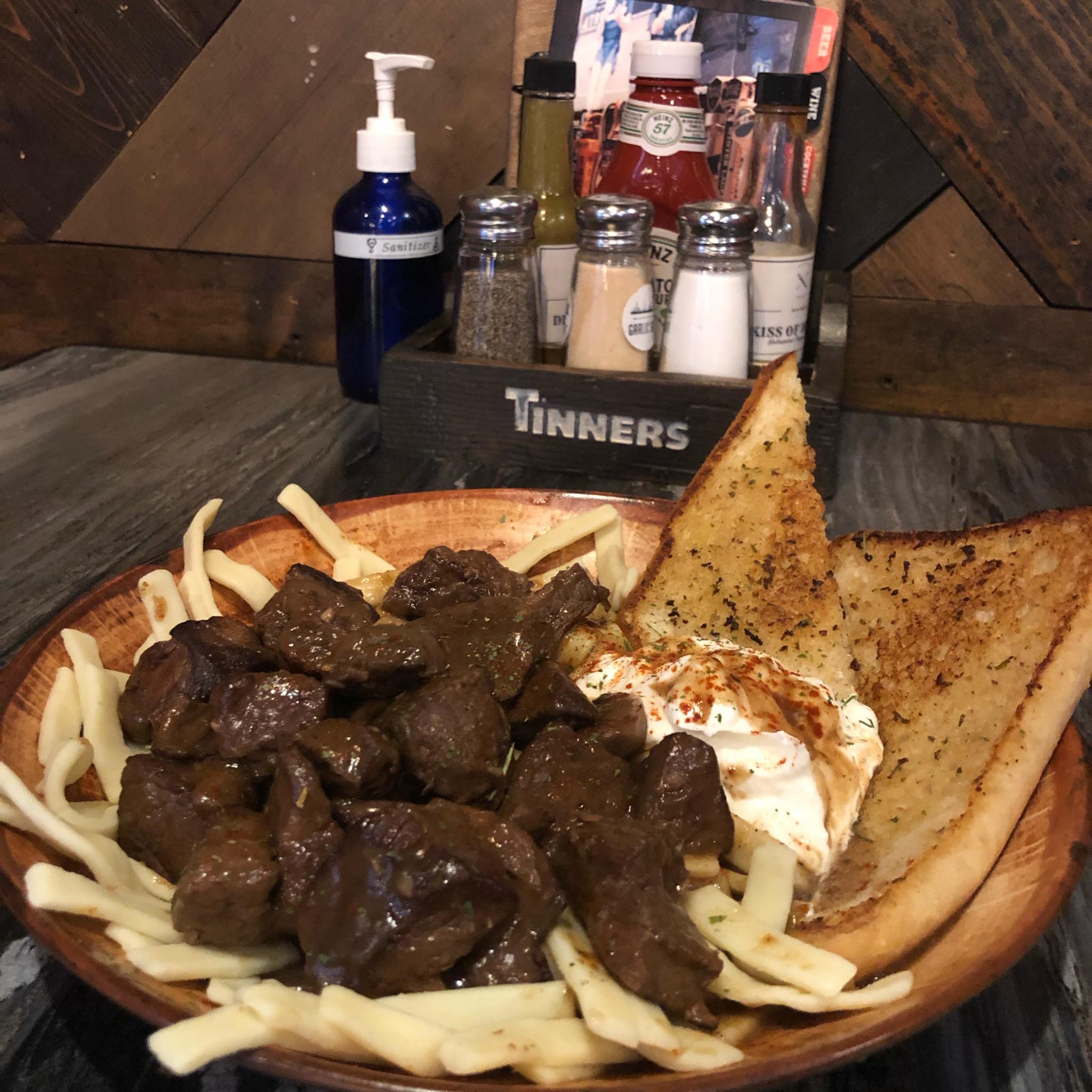 With plenty of chilly spring days ahead, the beef stroganoff on the featured menu for April at Tinner’s Public House will help keep you warm. Slow-roasted sirloin tips and mushrooms in a red wine and brown sauce are served with a dollop of sour cream and egg noodles. Other items on the menu include pulled pork potato skins, a peanut butter patty melt, a chimichanga and the Stobe Jones Pizza, the creation of kitchen leader Stephon “Stobe” Jones. It features a cauliflower crust, garlic-infused extra virgin olive oil, spinach, tomato, a four-cheese blend and balsamic glaze. The drink features this month have a fruit-flavored theme: Sour Grapes, Raspberry Lemon Sour Smash, Strawberry Tequila Fizz, lime-flavored Red Rum Mojito and the Dagg Nabbit with Grey Goose vodka, Midori, Malibu, pineapple juice and cream.