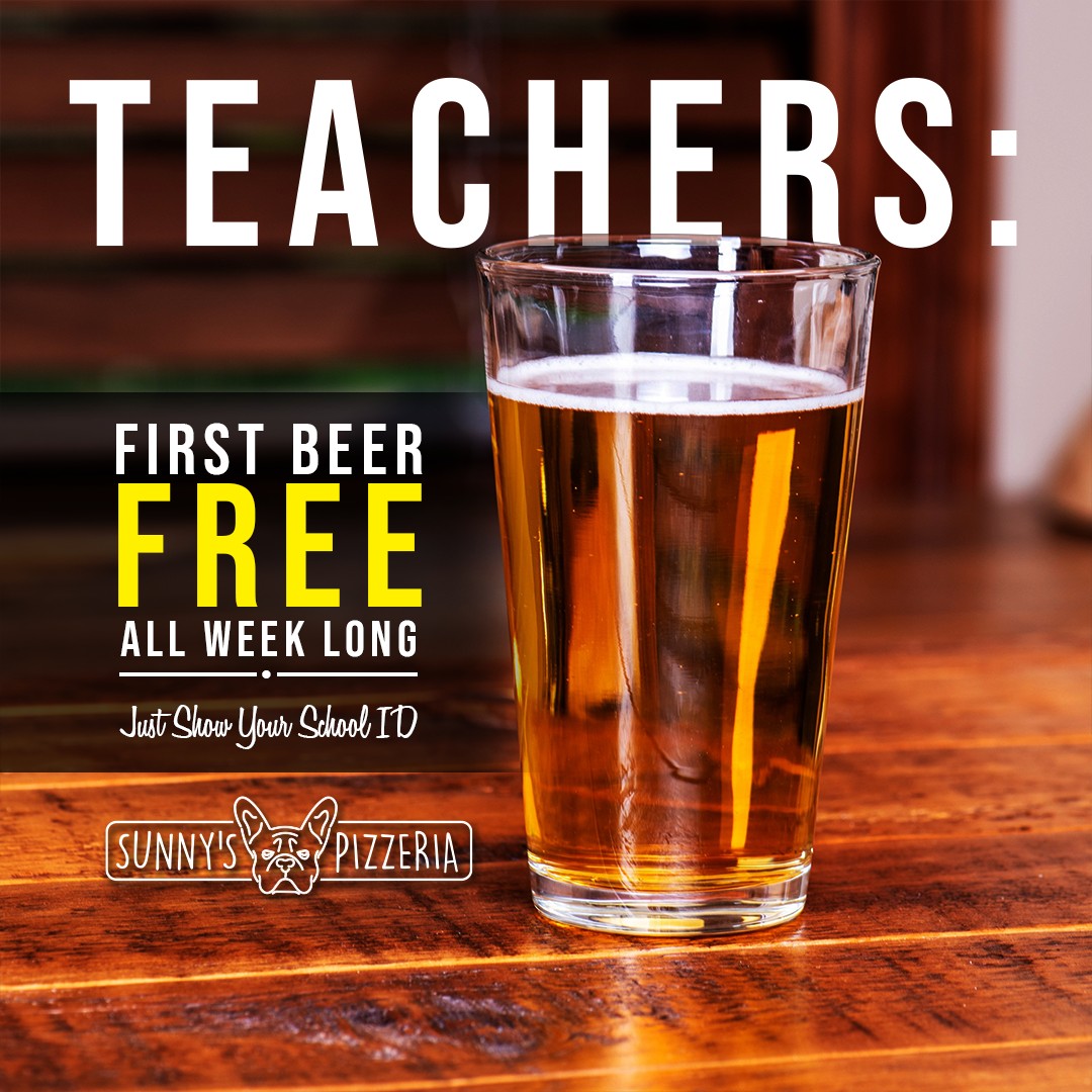 And to thank teachers for their hard work all school year, they get their first beer for free with their ID card through Tuesday at Sunny’s Pizzeria.