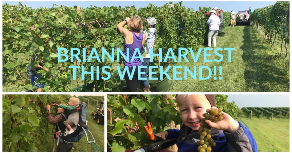 Calico Skies Vineyard & Winery is looking for volunteers to help harvest the Brianna grapes Saturday. The work begins at 7 a.m. – or whenever you get there. The vineyard between Canton and Inwood, Iowa, will serve doughnuts in the morning and pizza for lunch. Adult pickers also will get a bottle of Brianna. RSVP to events@calicoskieswine.com or call the tasting room at 712-753-2110.