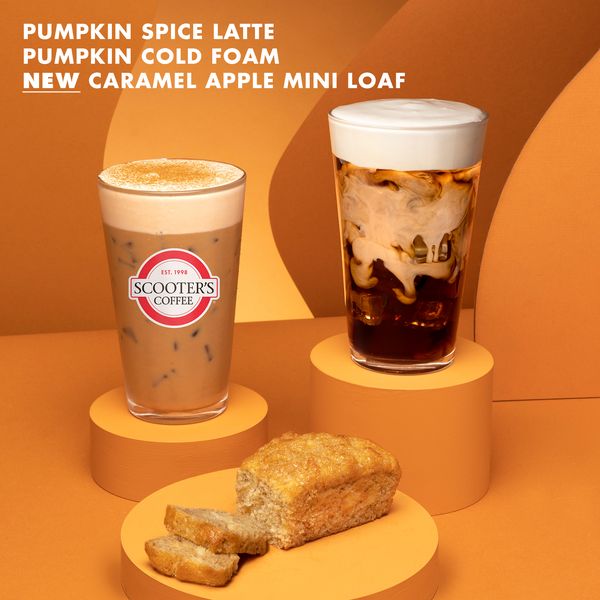 Scooter’s Coffee has released its fall menu. Beverage offerings include Pumpkin Caramelicious, Pumpkin Spice Latte, Maple Vanilla Latte, the new pumpkin or maple spice cold foams and a new Pomegranate Peach Red Bull Infusion. For baked goods, there’s a Pumpkin Caramelicious Muffin and the new Caramel Apple Mini Loaf.