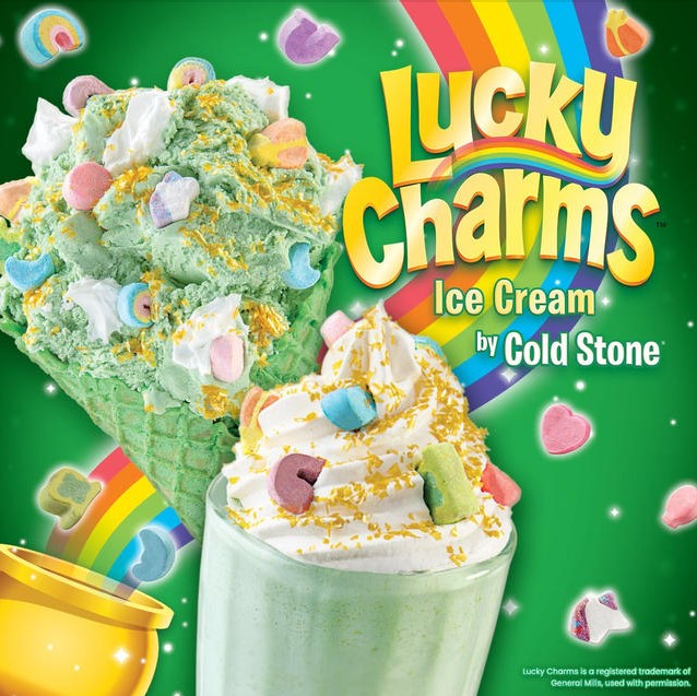 Any Lucky Charms fans out there? Cold Stone Creamery’s Lucky Charms Ice Cream is back for a limited time. Try it in the End of the Rainbow Creation or the Sprinkled With Charms Shake.