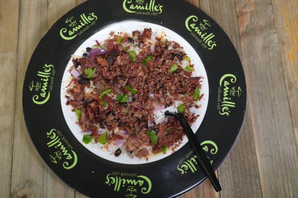 The featured dish of the month at Camille’s Sidewalk Cafe is the Pitmaster’s Rice Bowl. It includes smoked brisket, jasmine rice, black beans, melted pepper jack cheese, green peppers and red onions. Buy one and two drinks and get a free entree through the end of February. If you order online, use the code MASTERBOWL.