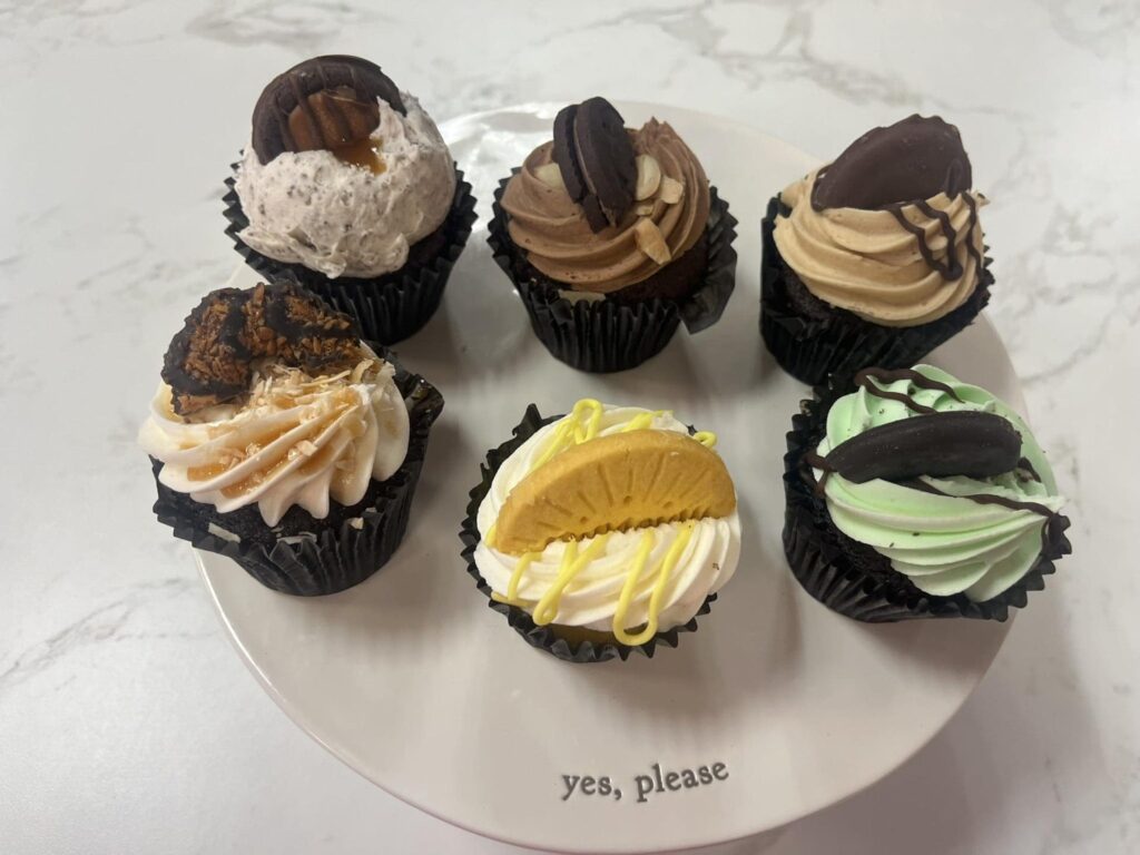 Girl Scout Cookie cupcake creations are in the case at Sugar Palace by Emily in Harrisburg. Buy all six flavors – Adventurefuls, Samoas, Tagalongs, Thin Mints, Lemon-Ups and the the new Exploremores — and save $3.