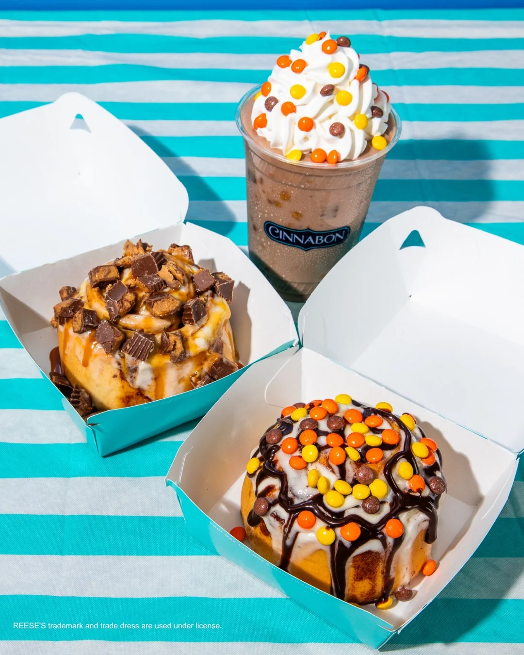 Cinnabon and Reese’s are teaming up for the Chocolate Peanut Butter Cup Bon, Chocolate Peanut Butter Candy Bon and Chocolate Peanut Butter Cup Chillatta.