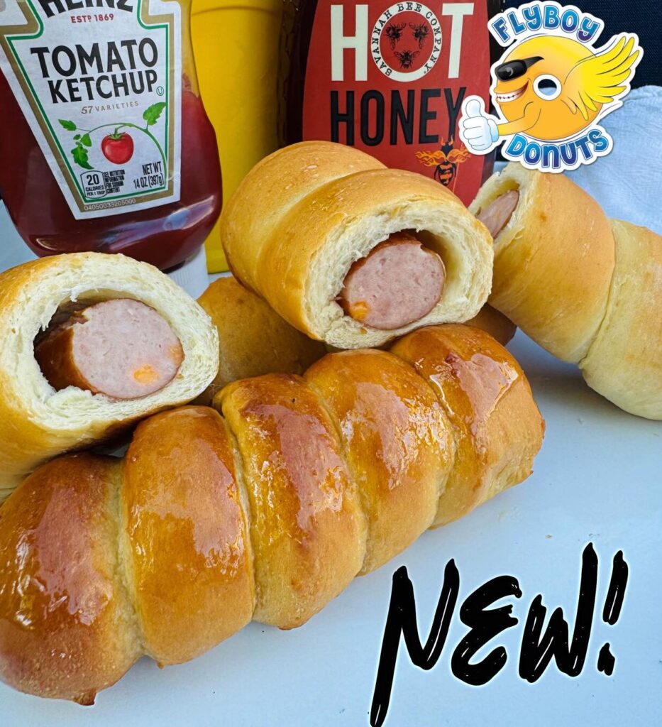 Flyboy Donuts has expanded its menu to include Rocket Dogs — also known as pigs in a blanket or Texas kolaches. They’re sweet dough wrapped around cheddar wurst or queso sausage.