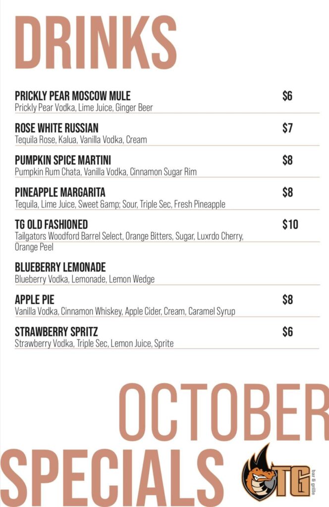 Check out the food and drink specials for October at Tailgators Grill & Bar in Brandon.