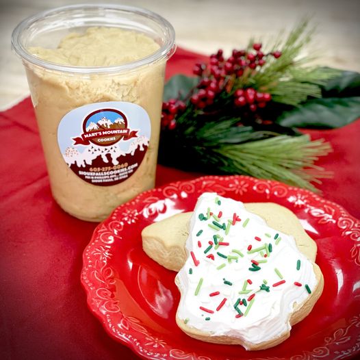 For December, Mary’s Mountain Cookies is selling its roll-out sugar cookie dough in 2-pound tubs so you can make your own holiday cookies at home.