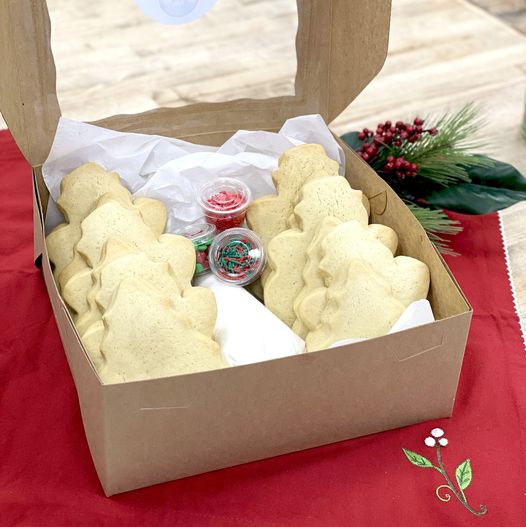 The bakery also has decorating kits with a dozen unfrosted sugar cookies in holiday shapes with a tube of buttercream frosting and three containers of holiday sprinkles.