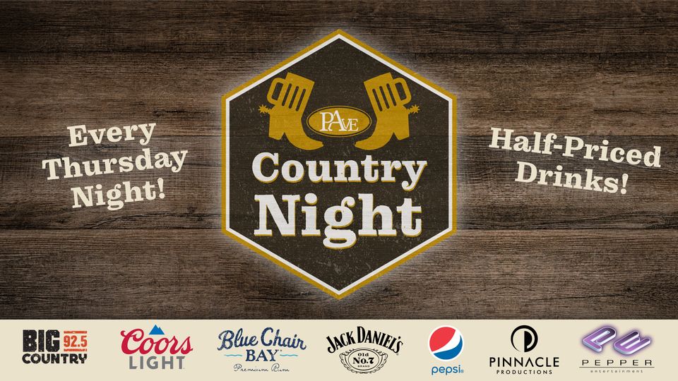 PAve has started Country Night on Thursdays. Get half-priced drinks, and listen to country music with a live DJ from 9 p.m. to close.