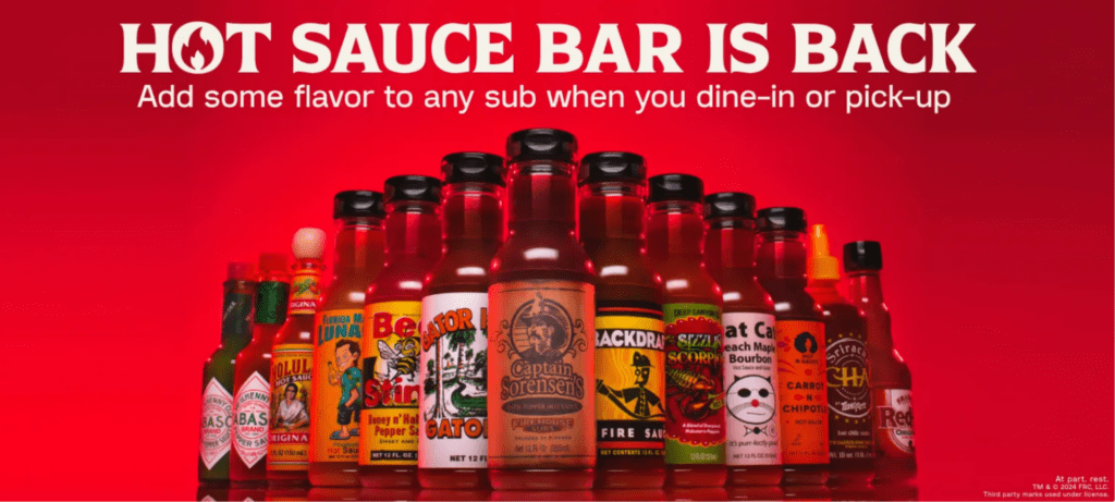Hot sauce happiness! During the pandemic, Firehouse Subs stopped providing bottles of hot sauce for customers to use on their sandwiches. Now, they’re back. Diners have 13 options.