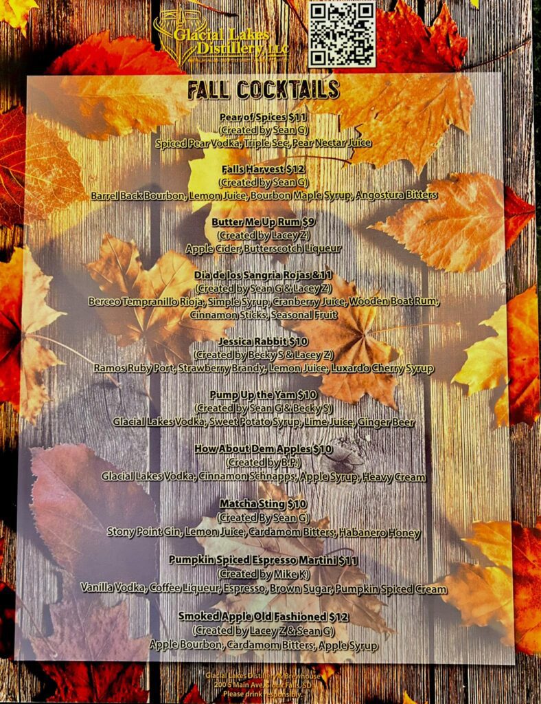 The bartenders at Glacial Lakes Distillery & Brewhouse have crafted 10 seasonal cocktails for fall.