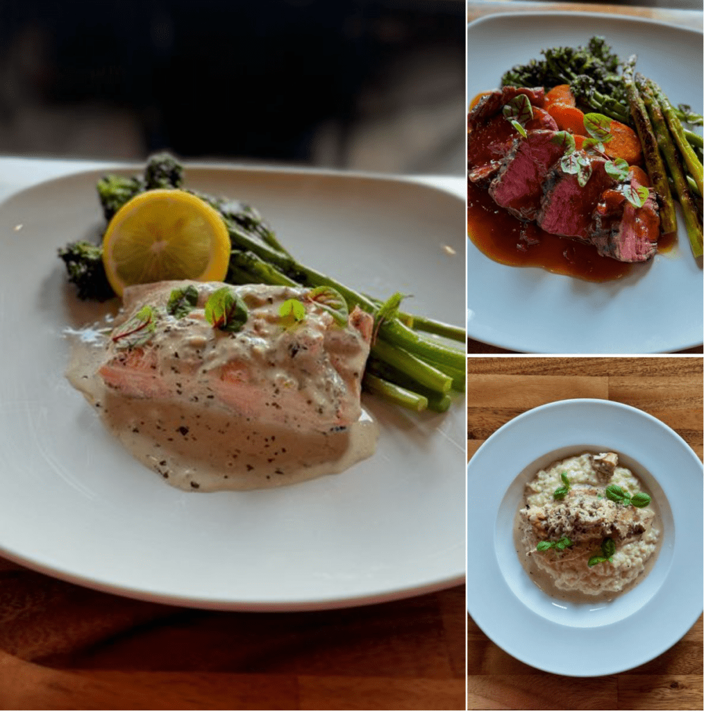 Maribella’s sister restaurant, R Wine Bar & Kitchen, has three additions to the menu: Lemon Herb Salmon, Honey Pepper Steak and Champagne Chicken with a three-cheese risotto.