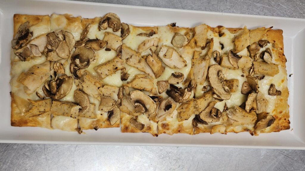 The featured flatbread of the month at The SandBar & Grill is Roasted Garlic Chicken and Mushroom.