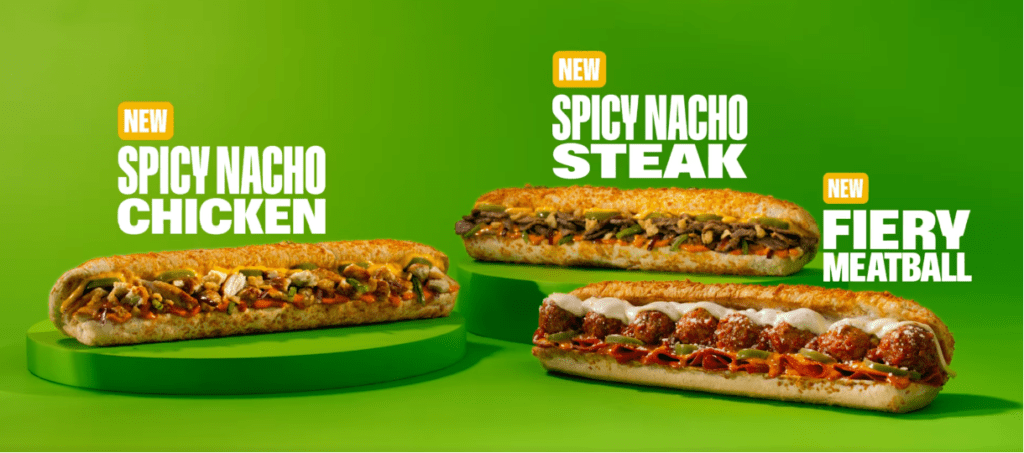 New subs at Subway feature spicy toppings on Ghost Pepper Bread. The limited-time features are Spicy Nacho Chicken, Spicy Nacho Steak and Fiery Meatball.