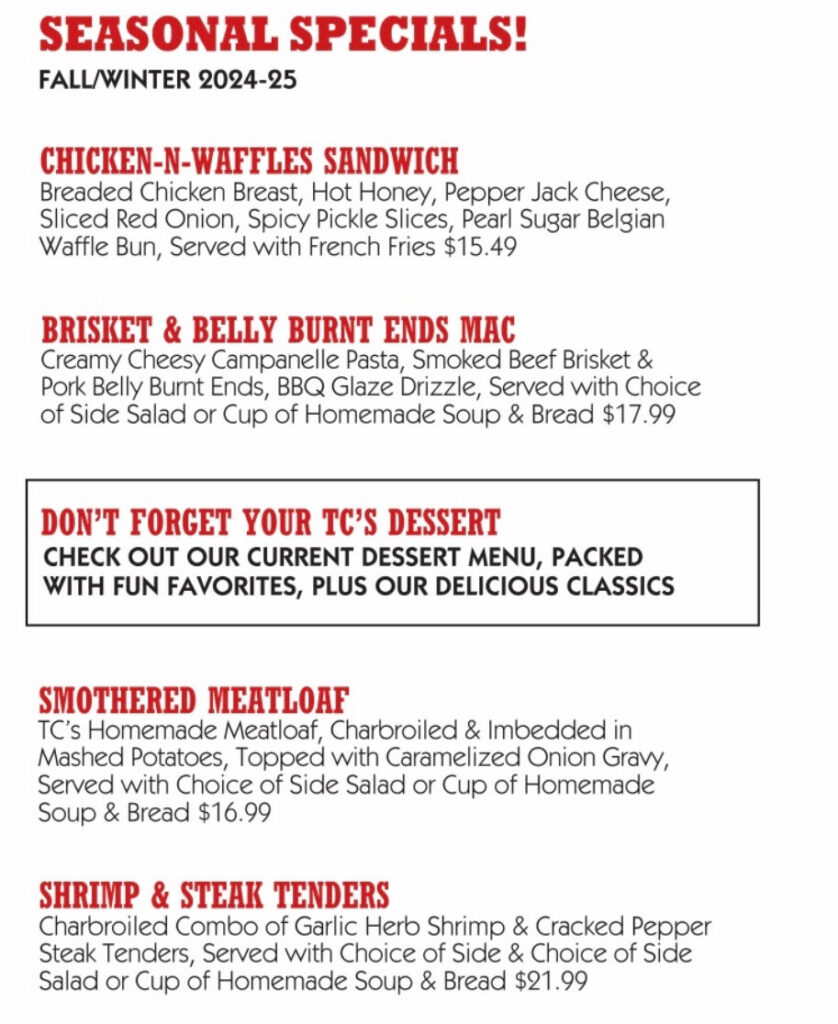 T.C.’s Referee Sports Bar & Grill leaned into comfort food for its fall and winter specials. Among the early customer favorites: Chicken-N-Waffles and Shrimp & Steak Tenders.