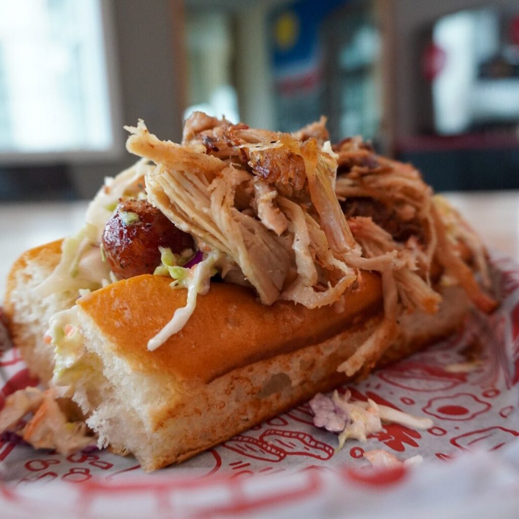 Look’s Marketplace is tackling another day of the week for specials with Wurst Wednesdays. Every week will feature a different bratwurst. This week’s offering was the Carolina Hot Link with a house-made smoked hot link, pulled pork and homemade coleslaw on a toasted hoagie roll.