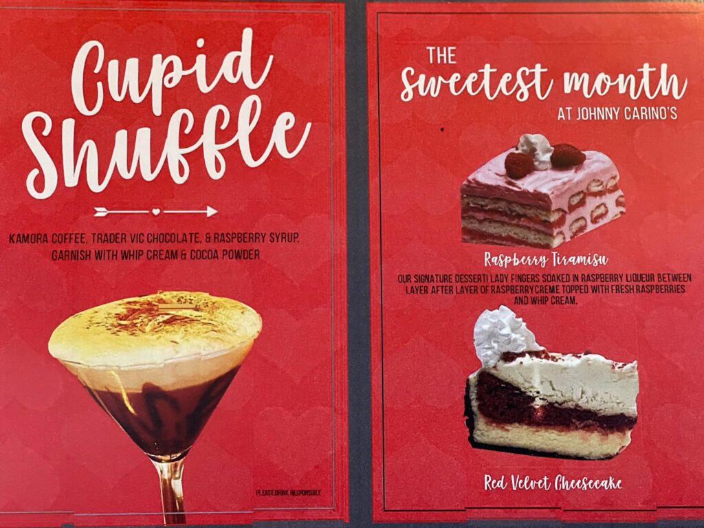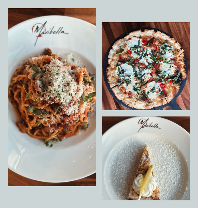 February’s features at Maribella Ristorante are Agnello & Portobello Ragu and Pizza Valentino with an olive oil base, fresh mozzarella, soppressata salami and fresh basil. For dessert, there’s Torta Mantovana, a Tuscan almond cake topped with icing sugar and toasted almond slices.