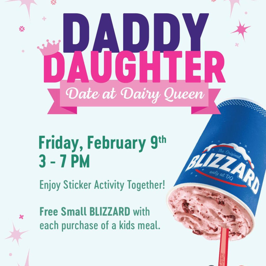 Dairy Queen sites recently held an event for mothers and sons, and now dads and daughters are up. Daddy-Daughter Date is from 3 to 7 p.m. Friday. Get a free small Blizzard with a kid’s meal purchase, and enjoy a sticker activity.