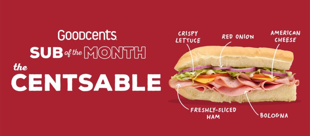The Goodcents sub of the month is The Centsable with bologna, ham, American cheese, lettuce and red onion – but you can always add more veggies.