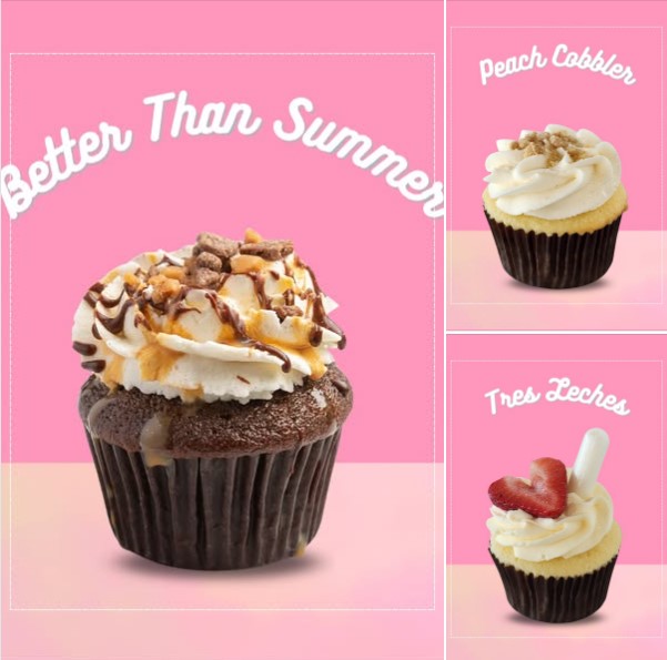New cupcake creations for May at Oh My Cupcakes are Peach Cobbler and Tres Leches. The returning favorite is Better Than Summer, with flavors of chocolate, caramel, whipped cream and toffee.