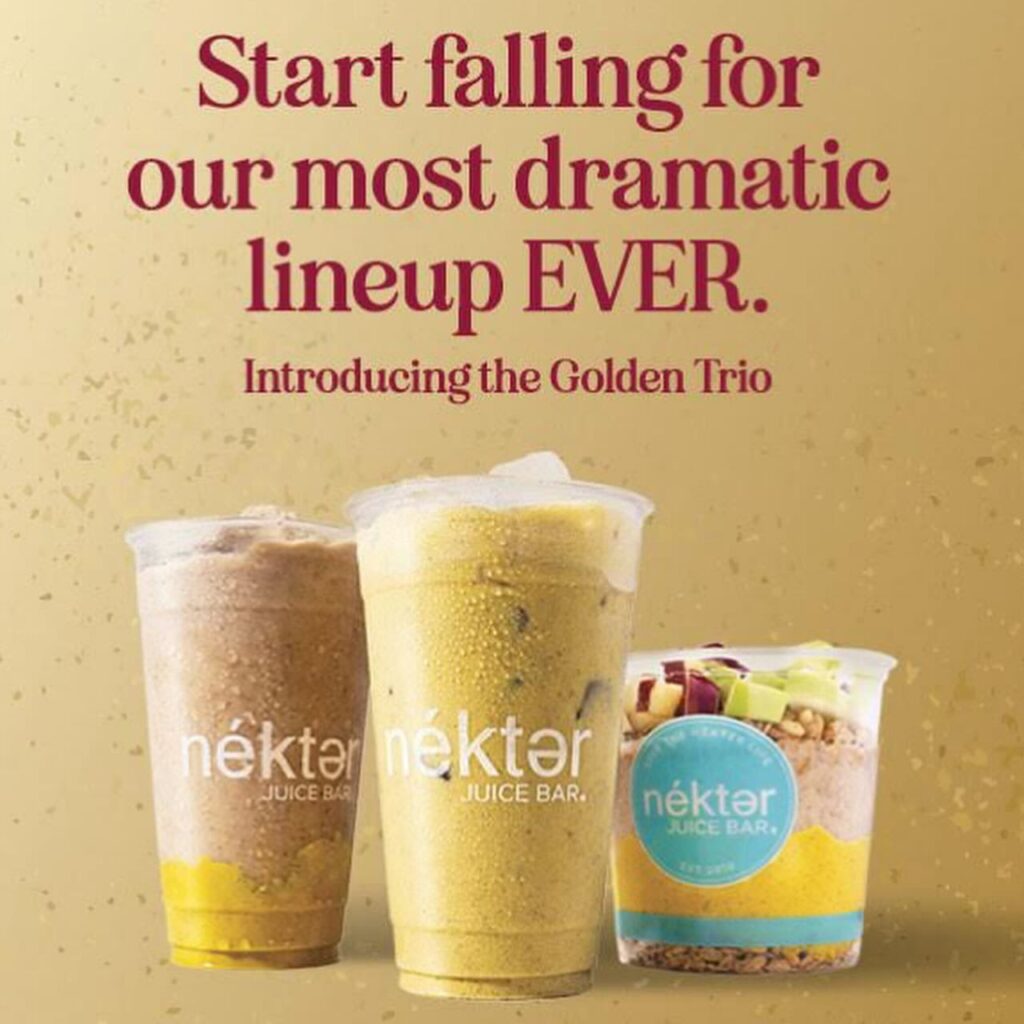 Nekter Juice Bar is promoting the return of “The Golden Bachelorette” with new themed offerings: the iced turmeric Golden Latte, Spiced Golden Apple Smoothie and Spiced Golden Apple Bowl.
