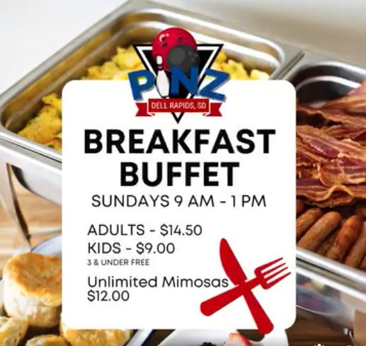 The Sunday breakfast buffet is back at Pinz in Dell Rapids. It’s served from 9 a.m. to 1 p.m. Owner Casey McCoy said he’s offering more “chef’s picks” this fall in addition to the usual bacon, sausage and egg staples. Last week, a “breakfast lasagna” feature was popular on the buffet, he said. Homemade cinnamon rolls are new too.