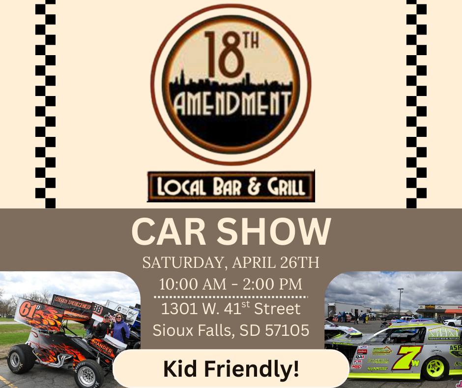 The 18th Amendment is offering half-price drinks and appetizers from 11 a.m. to 2 p.m. Saturday as part of its I-90 Speedway Car Show. Sprint cars will be on display.
